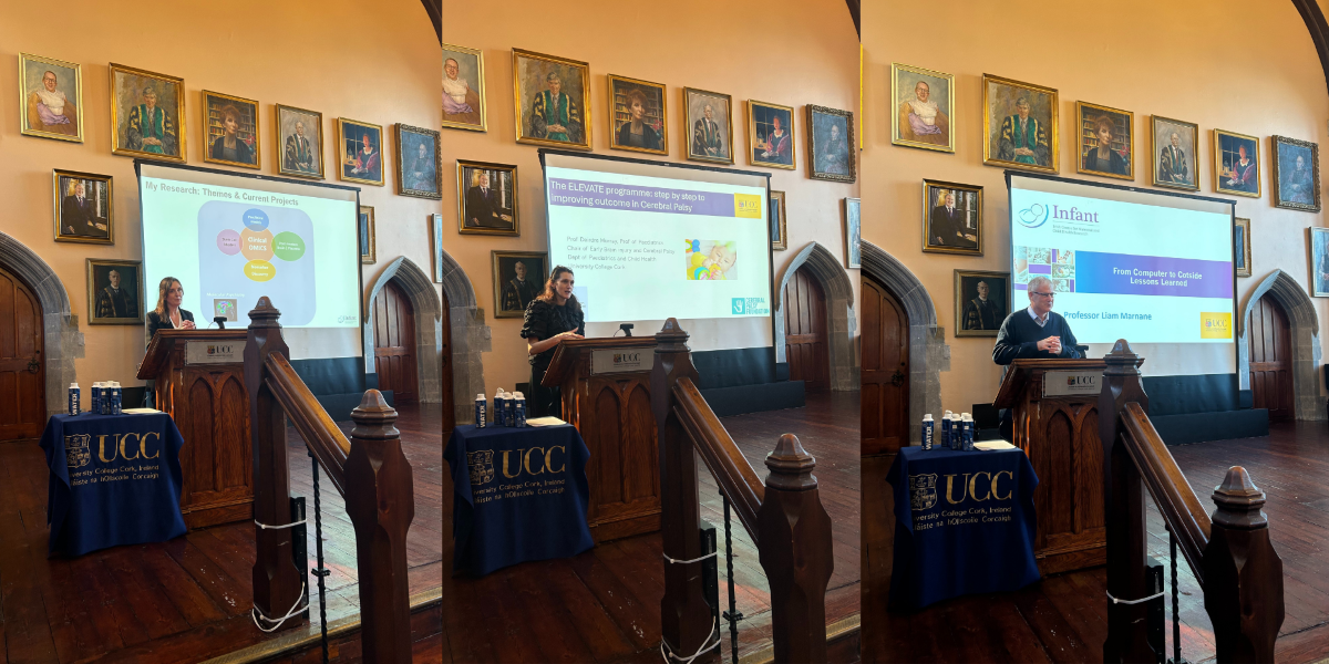 Professor Geraldine Boylan, Director of the INFANT Research Centre and UCC Futures Children, opened the Study Day with a welcome address and a recap of the highlights for 2025. She spoke about the Centre’s progress over the past 12 months in terms of funding, team expansion, support from central services, ongoing research studies, international conferences, spin-out updates, publications, awards, and what is coming up on the horizon. She also noted that INFANT is featured in UCC’s 180 Years exhibition in the Boole Library. We are proud to be part of UCC’s history, which has been a driving force in research and innovation, transforming lives through bold thinking and real-world solutions.