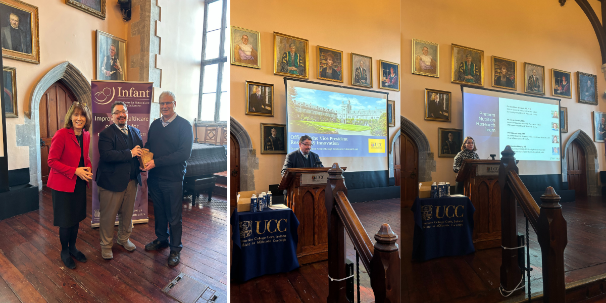 INFANT Director Professor Boylan took a moment to recognise Professor Marnane’s contribution to INFANT and UCC and how he has transformed the Centre’s ability to utilise technology, AI and machine learning to support decision making and data driven research. In recognition of this, Professor Marnane was presented with an award, “In Recognition of Your Outstanding Contribution to Maternal and Child Health Research in UCC,” by UCC’s Vice President for Research & Innovation, Professor John Cryan.
