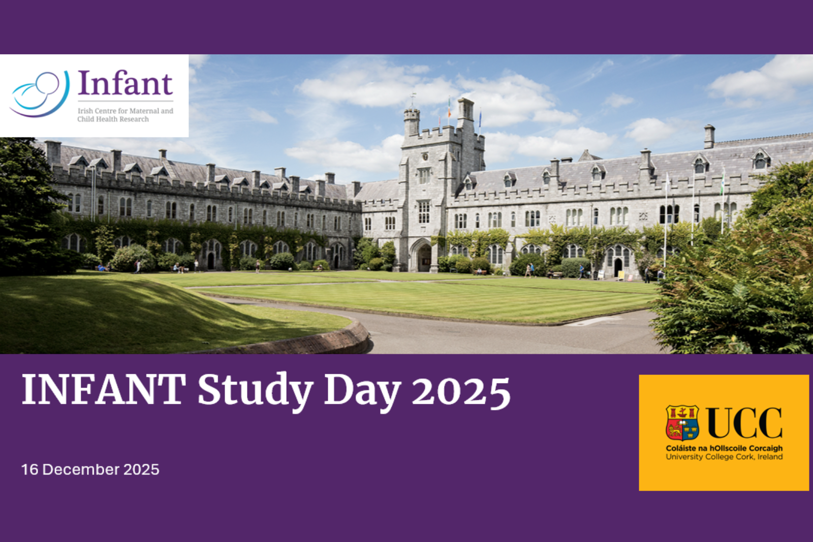 The INFANT Research Centre at UCC welcomed over 100 guests to its annual INFANT Study Day, which was held in the Aula Maxima on UCC’s campus – now home to portraits of 11 trailblazing women from, or with links to, the Munster region. The Study Day welcomed members of the INFANT multidisciplinary team from across a wide range of disciplines, including Neonatology, Public Health, Obstetrics, Paediatrics, Electrical and Electronic Engineering, Nutrition, Anatomy and Neuroscience, Physiology, AI, Pharmacology, Psychology and Health Information Systems (&more). We also welcomed colleagues from across UCC central services, and INFANT’s Strategic Advisory Board who support all the work we do, as well as those interested in learning more about INFANT’s research.
