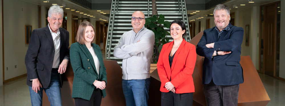 Pictured are Dr Ian Pitt, Lecturer in Usability Engineering and Interactive Media, School of Computer Science & Information Technology, UCC, Dr Aileen Murphy, Senior Lecturer in Economics, Cork University Business School, UCC, Prof Ali Khashan, Professor in Perinatal Epidemiology, School of Public Health and Principal Investigator, INFANT Research Centre at UCC, Julie Arnott, Lecturer in Health Protection/Infection Prevention and Control, School of Public Health, UCC and Dr Simon Woodworth, Lecturer in Business Information Systems, Cork University Business School and Lead Investigator, INFANT Research Centre, UCC.